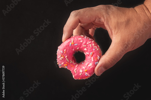 pink donut on black background