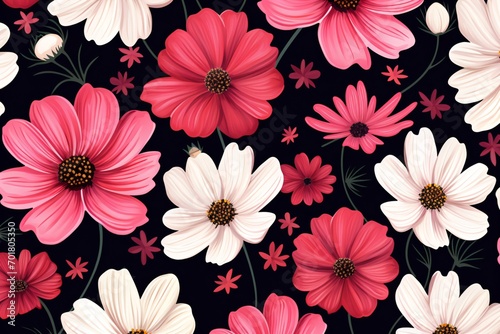 pink, colours, illustration, art, banner, poster, red, vector, print, pattern, seamless, fabric, floral, flower, flat, background, wallpaper, flower, spring, design, nature, decoration, summer, textile, texture, blossom, leaf, plant, garden, beauty