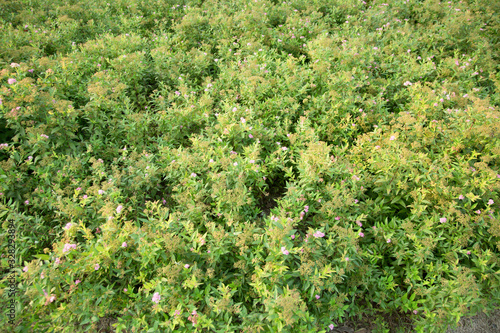 Pink flowers and Spiraea in the basin garden of Nantong, China