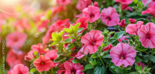 Pink flowers close up. Bouquet of red flowers. City flower beds, a beautiful and well-groomed garden with flowering bushes created with Generative AI technology