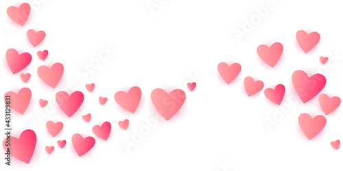 Pink flying hearts bright love passion background. Amour icons backdrop.