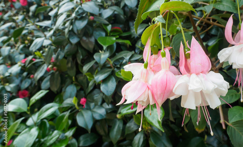 background, beautiful, bloom, blooming, blossom, botanical, botany, closeup, colours, colourful, exotic, flora, floral, flower, flower, fuchsia, garden, green, hanging, leaf, light, nature, pattern, pink, plant, purple, spring, summer, tropical, white