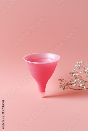 Pink funnel on pink background with delicate white flowers. Minimalist product shot.