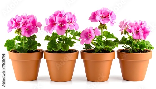 pink, geranium, pot, terracotta, flower, plant, blooming, green, nature, spring, growth, potted, beautiful, arrangement, floral, home, decor, garden, isolated, white