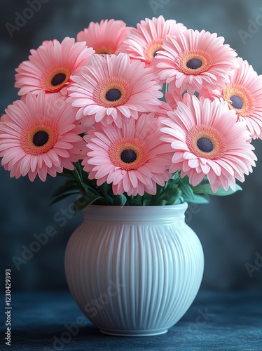 gerbera, daisy, pink, flower, vase, bouquet, floral, studio, background, dark, bloom, blossom, beauty, nature, spring, summer, decoration, ornament, arrangement, pretty, elegant, romantic, gift, love, celebration, wedding, birthday, mother, day, greeting, card, image, photo, picture, design, graphic, art, texture, colours, pastel, fresh, vibrant, botanical, happy, tender