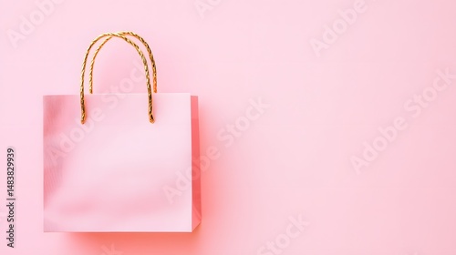 pink, bag, gift, gold, handle, background, shopping, paper bag, present, retail, purchase, shopping bag, gift bag, pastel, minimal, simple, elegant, stylish, template, design, branding, marketing, advertising, e-business, product, cardboard box, texture, surface, copy space, blank, empty, isolated, closeup, view, light pink, rose, delicate