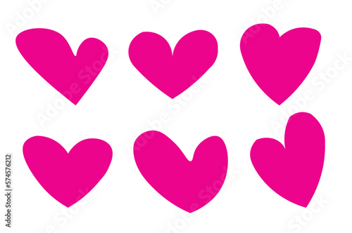 Pink heart shape on white background, love symbol. Vector flat heart silhouette Icon vector illustration design element set - vector