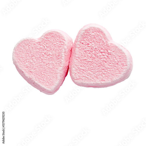 Pink Heart-Shaped Marshmallows Sweet Confectionery Isolated on a transparent background