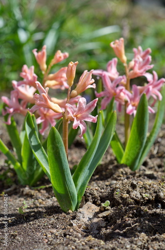 Pink hyacinths varieties "Gypsy Queen" (lat. Hyacinthus Gypsy Queen) bloom in the garden