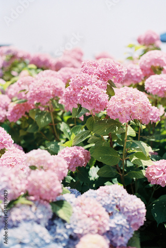 blue, pink, candy floss, new england, sun, garden, outside, plant, flower, flower, sunny, hydrangea, coastal, greenwich, connecticut, us