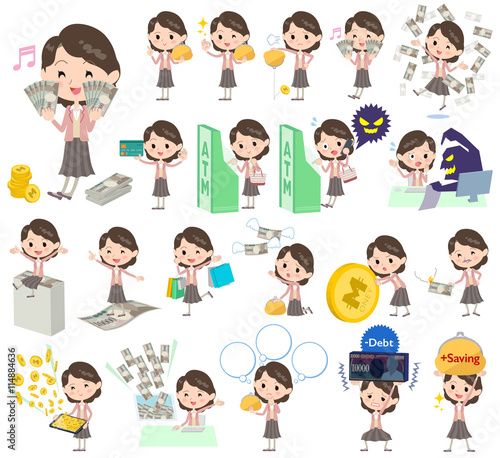 Pink jacket Middle woman money