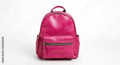pink, leather, backpack, pocket, zip, school, supply, bag, accessory, fashion, travel, casual attire, student, storage, shoulder, strap, carry, lightweight, compact, hard-wearing, modern, stylish, functional, pocket, zip, closure, portable, daily, urban, minimalist, material, soft, design, colourful, utility, organisation, education, equipment, isolated