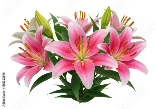 lily, flower, pink, bloom, floral, nature, plant, garden, beauty, delicate, fragrance, botanical, flora, leaf, green, pollen, bud, growth, decoration, element, background, bouquet, vibrant, prominent