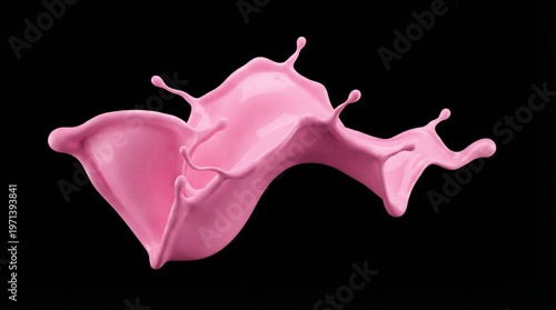 Pink liquid wave splash isolated on black, elegant fluid motion captured in high speed photography
