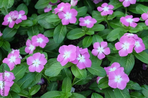Pink Madagascar Periwinkle on Catharanthus Roseus in The Garden