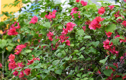 Pink Magenta Bougainvillea Flowers (Paper Flower) on a Bush in a Garden.
