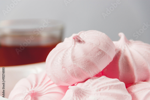 Pink Marshmallows - Zephyr in White Plate. Sweet Dessert Concept