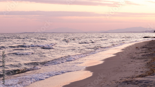 Pink Mediterranean sunset on the cost of the sea