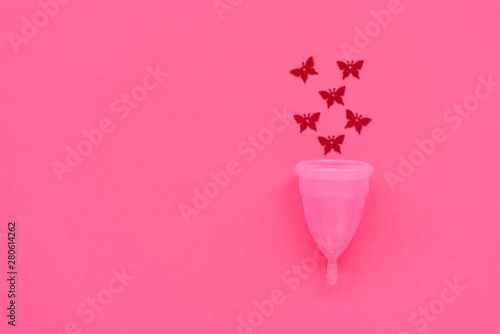 menstrual, pink, hygiene, alternative, bleeding, health care, still life, copy space, healthy lifestyle, personal, modern, vagina, topview, menses, protection, safety, rubber, solution, soft, object, product, concept, ecological, medicine, feminine, girl, latex, clean, vaginal, cup, recyclable, background, intimate, container, eco, silicon, period, blood, woman, sanitary, menses, female, butterfly
