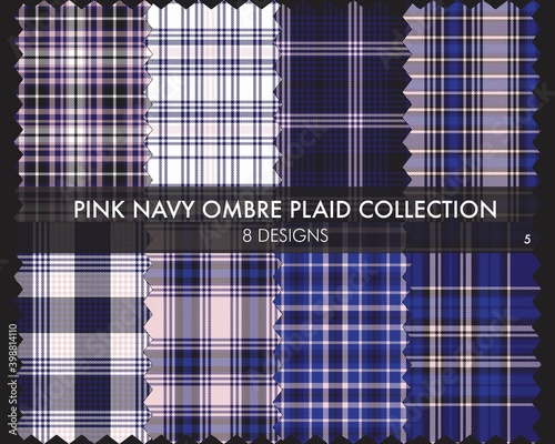 Pink Navy Ombre Plaid textured Seamless Pattern Collection