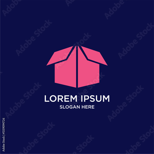 box, pink, logotype, design, graphic, open, closed, pixel, modern, abstract, minimalist, corporate, branding, illustration, symbol, icon, template, colourful, flat, geometric, dark, background, light, blue, magenta, simple, clean, motto, text, placeholder, marketing, business, company, presentation, package, shipping, product, delivery, e-business, retail