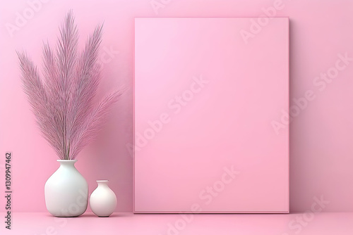 Pink Pastel 3D Render of Vases and Pampas Grass