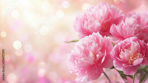 Pink peony flower background featuring lush, delicate petals in soft pastel hues for romantic and elegant floral designs.