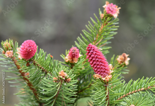 nature, green, tree, plant, tree branch, pine, cone, spring, needle, pink, summer, macro, needle, forest, evergreen, garden, flora, red, cone, season, park