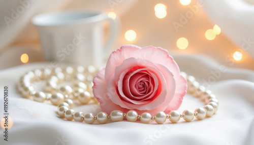 rose, pink, pearl, necklace, soft, fabric, bokeh, light, elegant, delicate, love, mother, day, natural, graceful, beautiful, charming, stylish, art, decor, feminine, tender, heartfelt, cheerful, inspiration, celebration, romantic, cosy, creative, pretty, peaceful, happy, floral, holiday, decoration, thoughtful, detail, artistic, flower, closeup, beauty, cup, romance