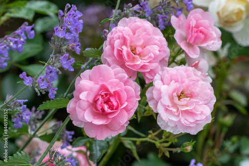 pink Rose Bonica 82 und Katzenminze im Sommergarten