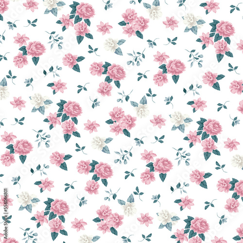 Pink Rose Flower and Leaf Garden Allover Seamless Pattern Design Artwork