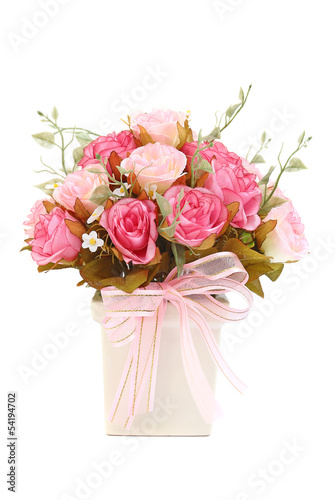 pink, rose, white, vase, beautiful, bouquet, gift, romantic, valentine, arrangement, celebration, decoration, flower, isolated, love, ribbon