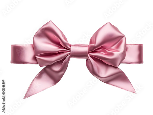 Pink satin bow isolated on a white background, perfect for gift wrapping and decorative purposes.