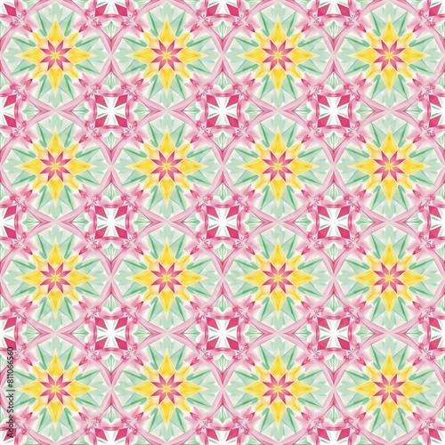 pink stars rose diamond yellow green beautiful fabric pattern seamless textile fashion background