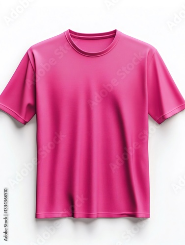 t-shirt, pink, blank, design, apparel, clothing, fashion, casual attire, style, template, textile, cotton, garment, empty, studio, white background, product, display, merchandise, brand, promotion, advertising, marketing, retail, e-business, shopping, consumerism, clothes rack, modern, simple, minimalist, vibrant, colourful, fuchsia, magenta, isolated