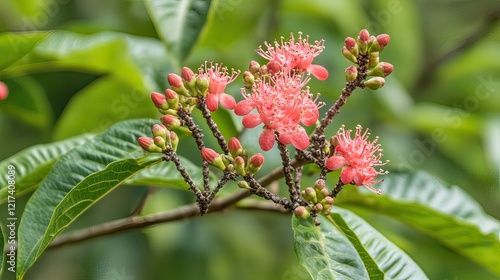 flower, pink, tropical, bloom, foliage, green, plant, nature, blossom, botany, flora, spring, summer, flowering, red, botanical, garden, background, texture, closeup, macro, detail, exotic, vibrant, beauty, growth, plantation, leaf, vegetation, floral, design, image, photo, illustration, artwork, element, organic, environment, wildflower, orchid, jungle