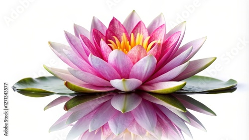 water lily, lily, flower, pink, blossom, bloom, aquatic, plant, flora, water, nature, botany, isolated, white, background, studio, photo, macro, closeup, image, single, detail, vibrant, colours, beauty, serenity, peaceful, calmness, delicate, elegance, natural, pure, fresh, botanical, stem, leaf, vegetation, object