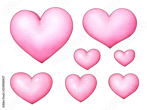 Pink Watercolor Heart Set Illustration On Transparent Background For Valentine Day Symbol Of Love And Romance For Digital Art