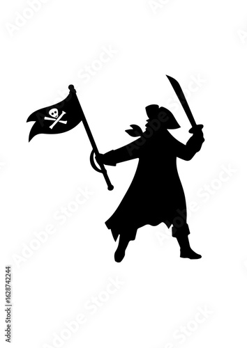 Pirate Silhouette Holding Sword and Flag