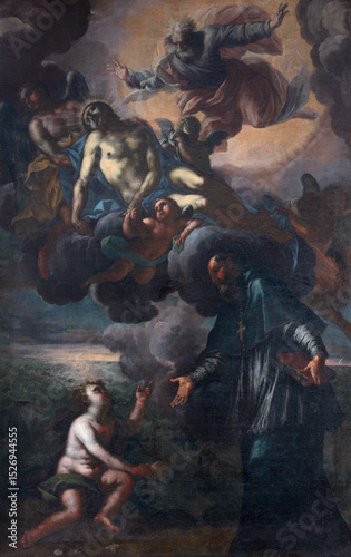 PISTOIA, ITALY - MARCH 16, 2025: The painting of Vision of St. Augustine in the church Chiesa di san Bartolomeo by unknown artist.