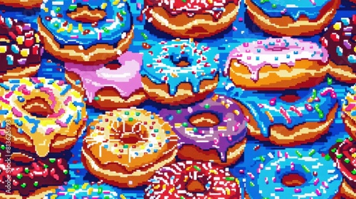 seamless pattern, donut, cake, textile, cupcake, pattern, background, birthday, pixel, repeat, game, wrapping, fabric, chocolate, candy, food, wallpaper, snack, bakery, colourful, donut, muffin, pink, video game, dessert, sweet, ornament, party, print, illustration, paper, cute, eat, holiday, seamless, mosaic, repetition, funny, pastry, various, cafes, cartoon, art, abstract