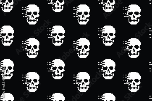 seamless pattern, black background, digital artwork, video game, graphic design, wrapping paper