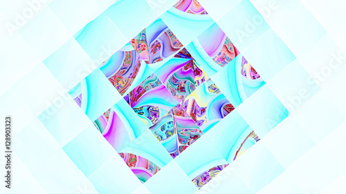 Pixel field of squares. 3D surreal illustration. Sacred geometry. Mysterious psychedelic relaxation pattern. Fractal abstract texture. Digital artwork graphic astrology magic