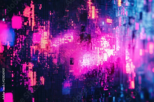 pixelated, error, symbol, raining, shattered, digital, screen, abstract, pattern, overlapping, bright, colours, glitch, malfunction, tech, distortion, cyber, datum, fragmentation, signal, noise, vibrant, broken, chaotic