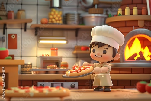Pizza Chef Character Serving a Delicious Meal in a Colorful Kitchen