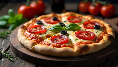 horizontal, photo, pizza, cheese, tomatoes, closeup, cooked, food and drink, food, italian culture, indoor, lunch, eatery, ready-to-eat, rustic, tasting, fast food, healthy eating, salami, snack, circle