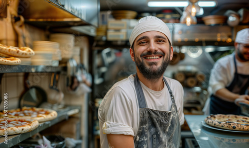 Pizzaiolo Chef standing in a pizza restaurant kitchen