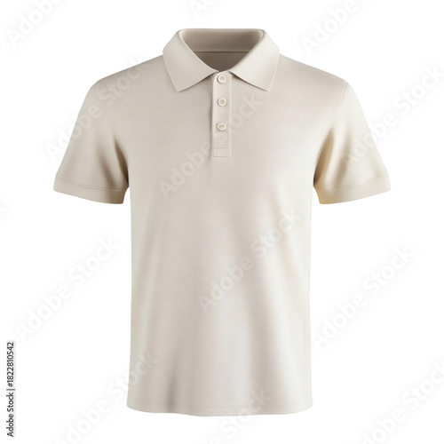 clothing, apparel, garment, shirt, polo, cream, golf, beige, light, textile, fabric, casual attire, fashion, style, wear, cotton, knit up, soft, comfortable, collar, buttons, short, sleeve, blank, empty, design, template, mock, up, presentation, showcase, product, digital, render, isolated, cut-out, studio, nobody, object, modern, trendy, youthful, simple, basic, everyday, versatile, sporty