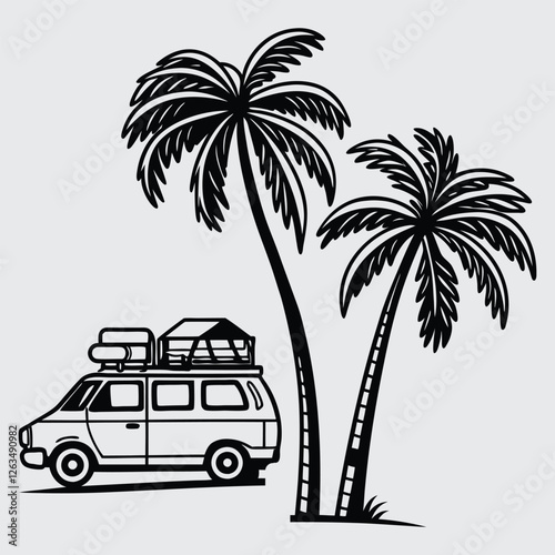 palm, tree, beach, tropical, summer, vector, island, sea, nature, sun, illustration, travel, silhouette, ocean, sunset, vacation, landscape, design, paradise, holiday, sky, leaf, coconut, exotic, water