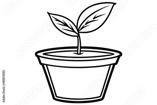 plant pot with sprout line art silhouette vector illustration
